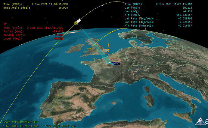 Au-dessus des terres émergées, le satellite acquiert des mesures en visée nadir. Un mécanisme de scan autorise le dépointage de la ligne de visée de part et d’autre de la trace avec une amplitude de ± 200 km, favorisant ainsi l’acquisition de mesures non corrélées.