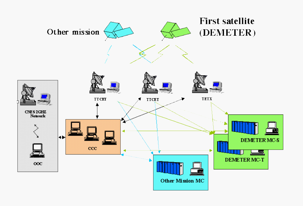 - Un centre de mission technologique où sont centralisées les opérations technologiques de DEMETER (COA, TMHD, ...). Il est également localisé au CNES à Toulouse.