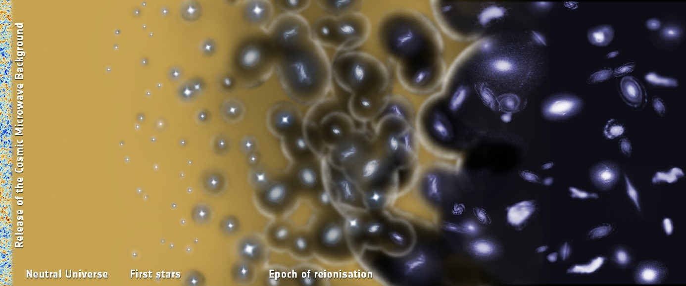Le satellite Planck de l'ESA a révélé que les premières étoiles de l'Univers ont commencé à se former plus tard que ce que les observations du fond cosmologique indiquaient. Cette analyse montre aussi que ces étoiles étaient la seule source nécessaire pour rendre compte de la ré-ionisation des atomes dans le cosmos, avec la moitié du processus déjà fait lorsque l'Univers n'avait que 700 millions d'années.