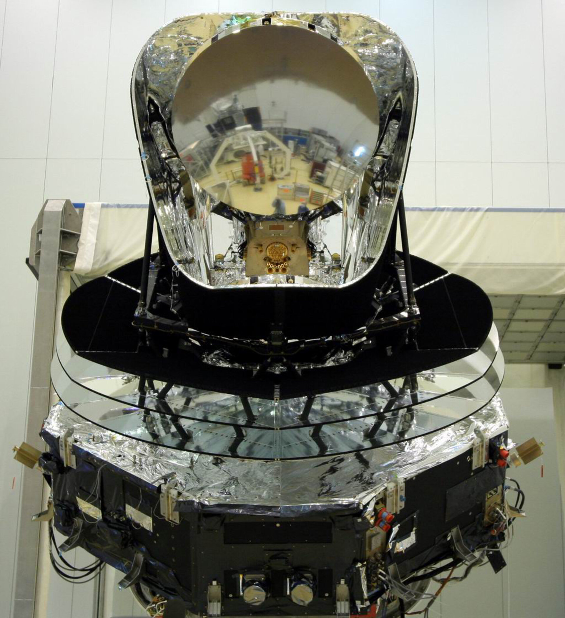 - Un télescope grégorien de 1,75 x 1,5 m, équipé d'un miroir primaire et d'un miroir secondaire pour recueillir les radiations microonde et les diriger sur le plan focal des instruments, et d'un baffle de protection