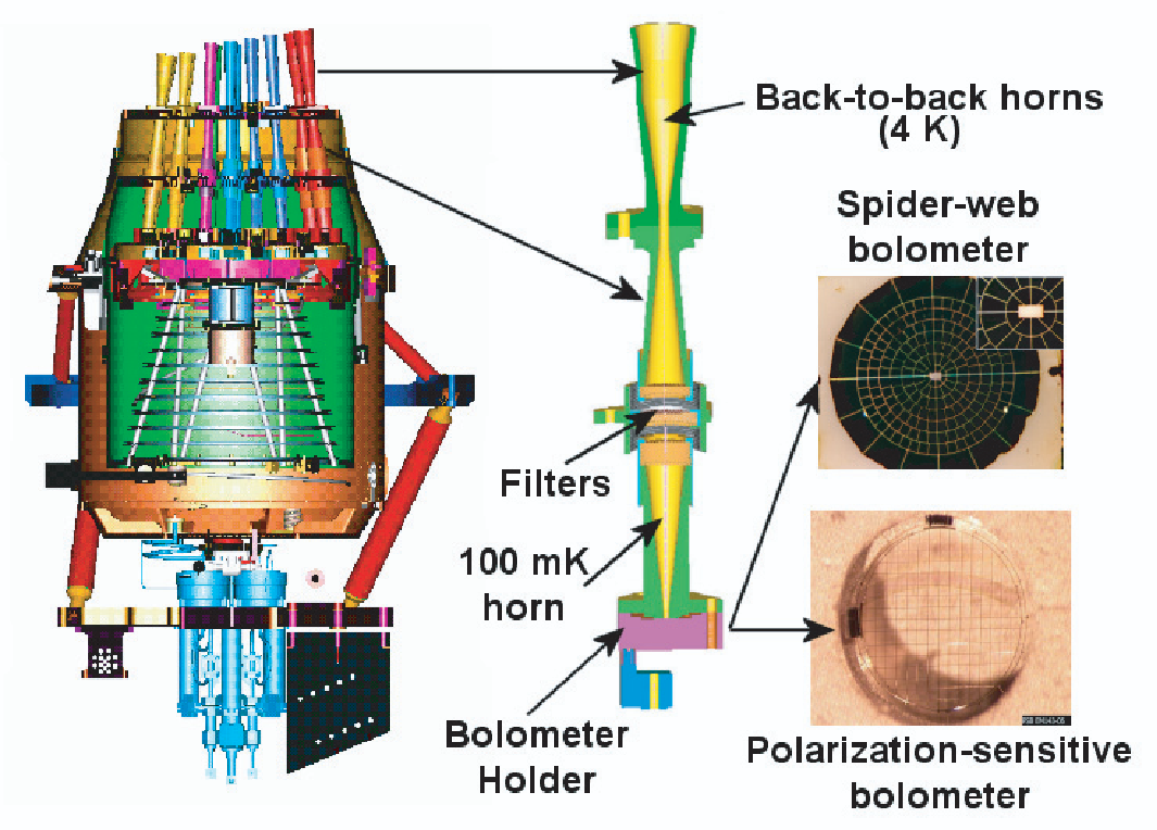 Les meilleurs détecteurs disponibles à l’époque de la conception du satellite Planck avaient un absorbant du type toile d'araignée (spider web) et un thermomètre en germanium dopé par transmutation (NTD). Ils ont été développés par Caltech/JPL. Les électroniques de lecture ont été développées en France (CESR) et ont constitué un apport essentiel au projet. Le refroidissement des bolomètres à 100mK, nécessaire à l'obtention des performances requises, était assuré grâce au réfrigérateur à dilution en boucle ouverte (invention CNRS/CRTBT couverte par un brevet CNES). Des réserves d'hélium 3 et d'hélium 4 comprimés dans des sphères donnaient au réfrigérateur une autonomie de 14 mois minimum.