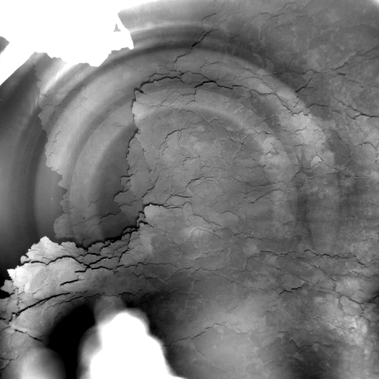 - La surface sur laquelle Philae s’est stabilisée, dans la région Abydos, a un aspect plus chaotique, avec des falaises, des crevasses et de gros blocs composés de glace ou de sel (albédo plus fort) et de matériaux riches en carbones (albédo plus faible). Il y a ici beaucoup moins de régolithe que sur la surface de la région Agilkia. Les résultats des instruments de Philae décrivent une région Agilkia plus poudreuse et une région Abydos plus dure. Il semblerait que ces régions plus poudreuses sont le résultat d’une accumulation de retombées de poussière de régolithe après des épisodes d’activité cométaire, i.e de sublimation de glace sous-jacente.