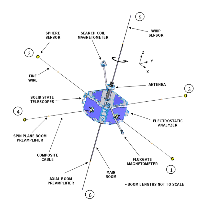 Chaque satellite THEMIS est équipé de 5 instruments, qui sont :
